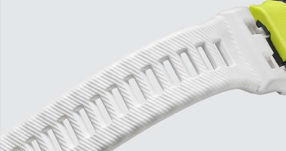 Delivers shock resistance and 200-meter water resistance even packed with a built-in optical sensor that measures heart rate at the wrist. Five-sensor functions work with the GPS functionality to monitor workouts in real time, connecting with the dedicated app to support training assessments, analyses, and planning.